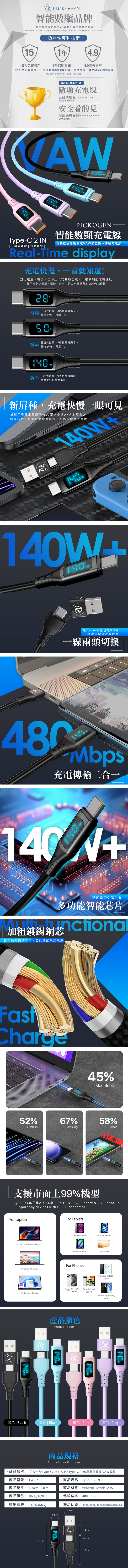 ✦充電倍快續航更給力,適用筆電、iPad、Switch、手機等Type-C接口設備