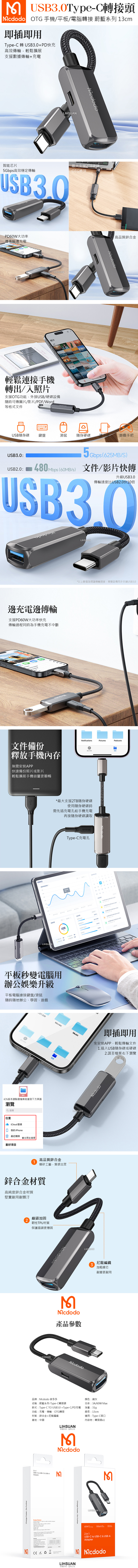 ●款式:Type-C TO USB-A 3.0 +Type-C/PD充電